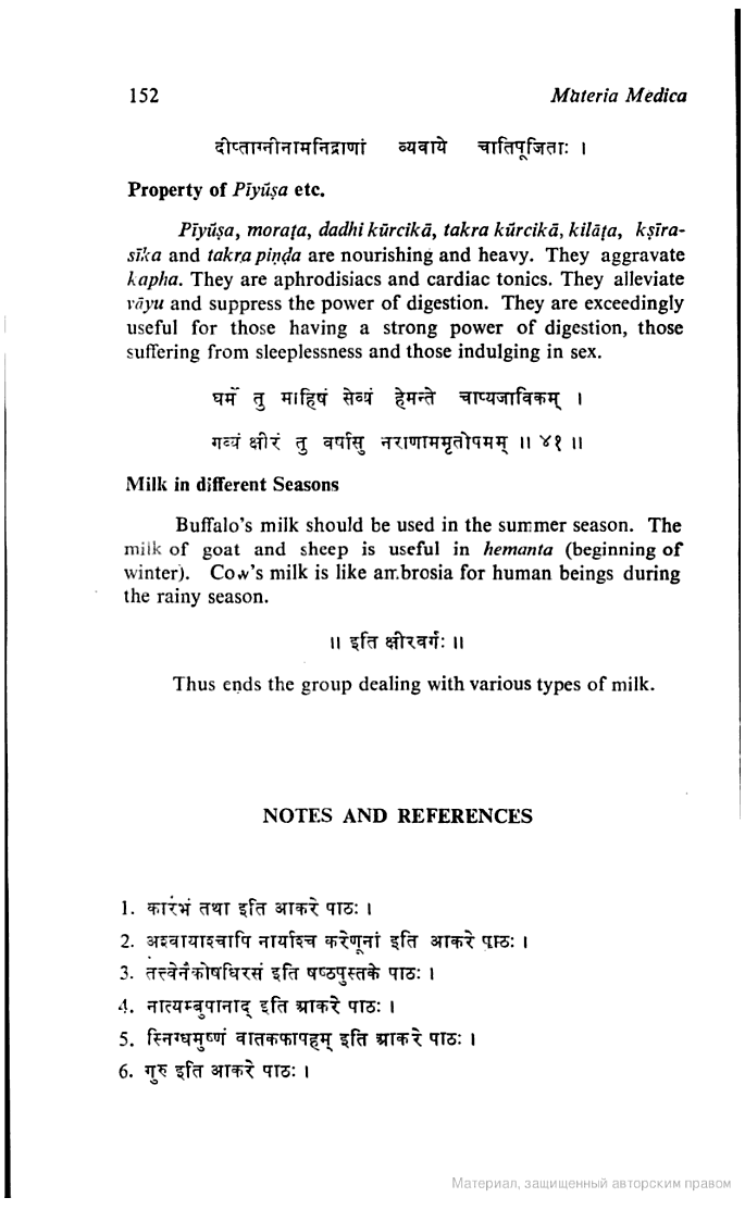 "Обезжиренный сыр (полученный из такра) является афродизиаком; это тяжёлый для пищеварения продукт, обладающий очищающим от слизи, сушащим, закрепляющим действием."