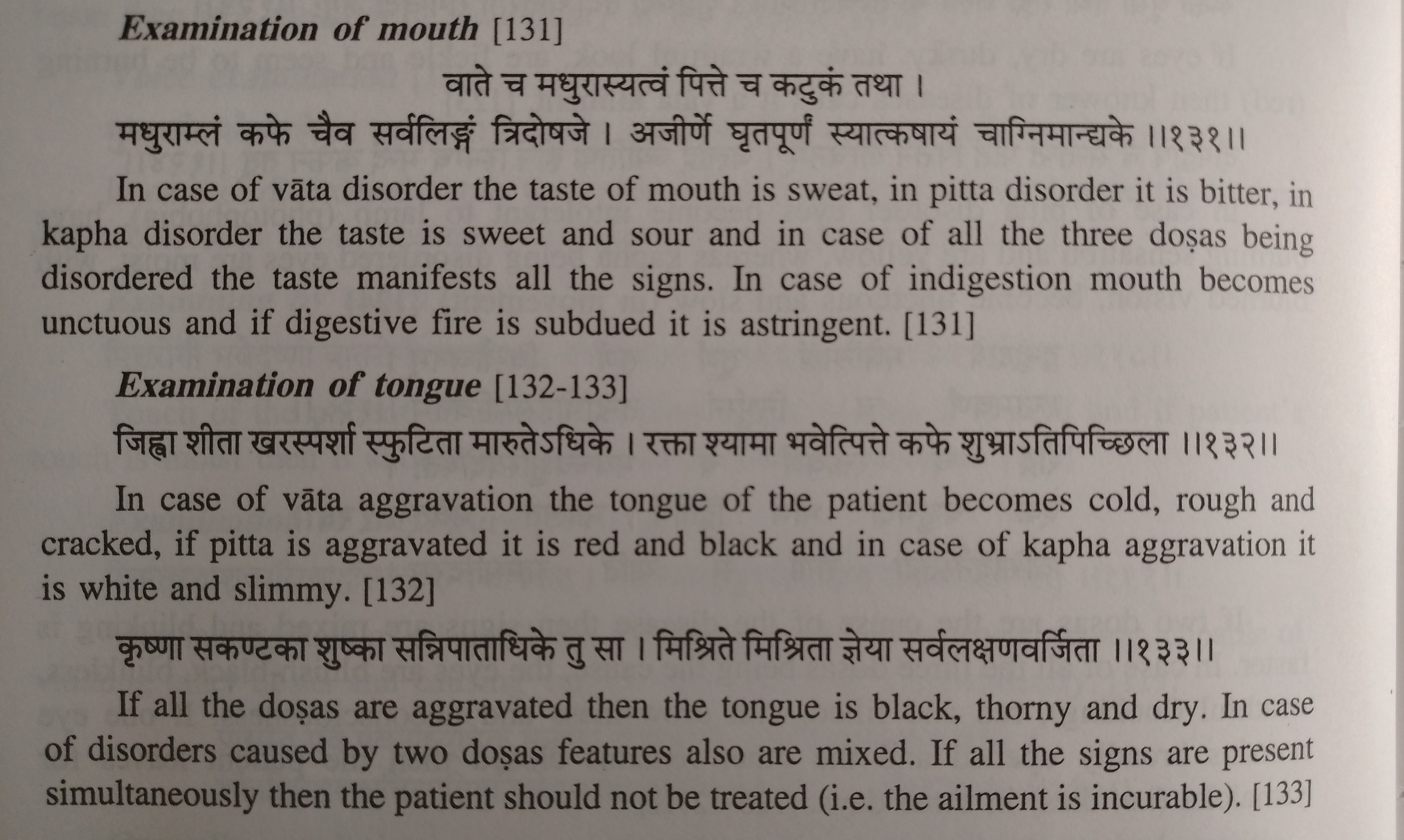 (В переводе на фото ошибка - "In excess of *Kapha* tongue becomes obese, heavy...")